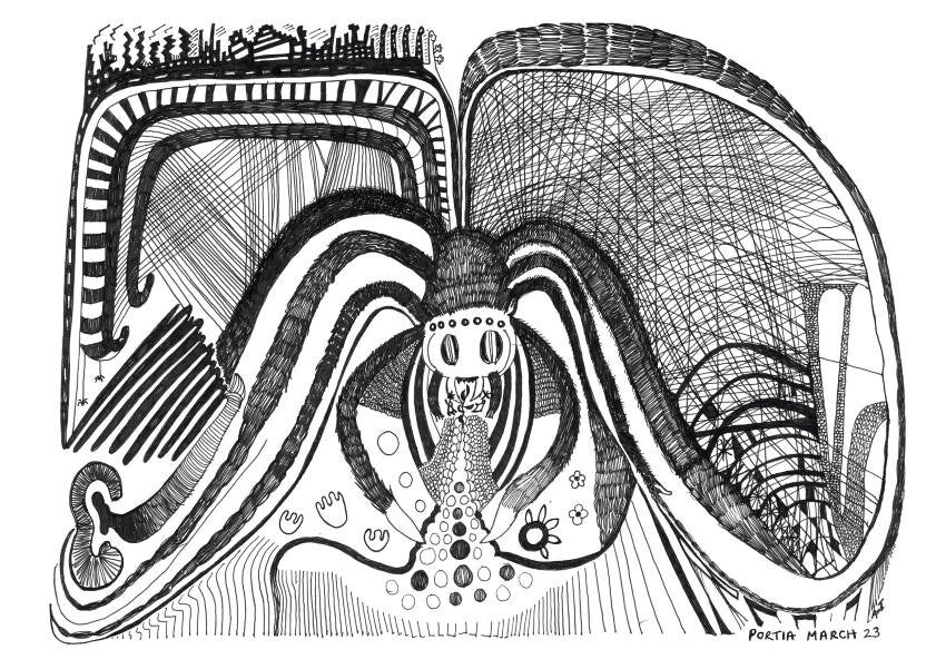 Inspired by the novel and Sci-Fi trilogy 'Children of Time' by Adrian Tchaikovsky, Portia is an exploratory dive into the impresive qualities and 'technologies' of the Arachnid world builders.